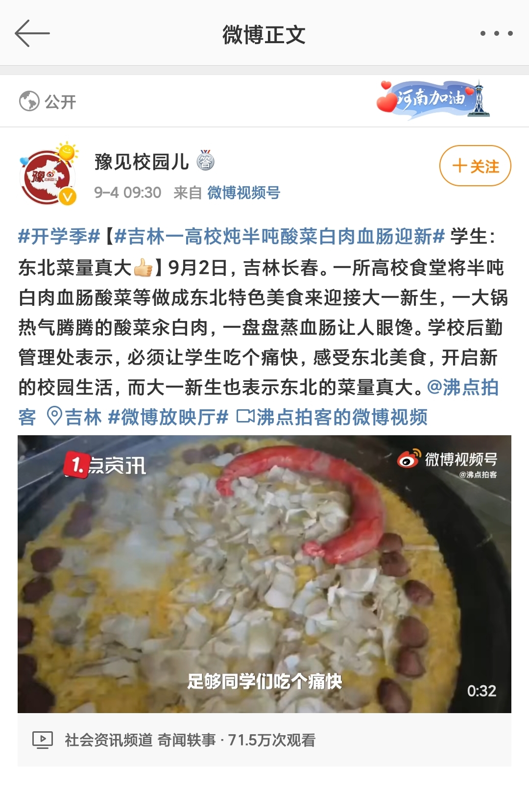 【豫見校園兒】#吉林一高校燉半噸酸菜白肉血腸迎新# 學(xué)生:東北菜量真大
