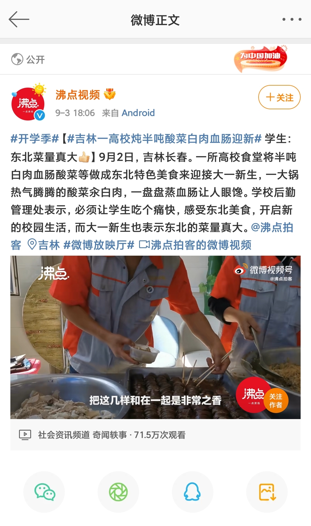 【沸點視頻】#吉林一高校燉半噸酸菜白肉血腸迎新# 學生:東北菜量真大