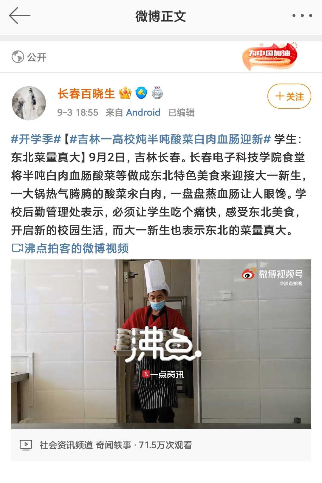 【長春百曉生】#吉林一高校燉半噸酸菜白肉血腸迎新# 學(xué)生:東北菜量真大