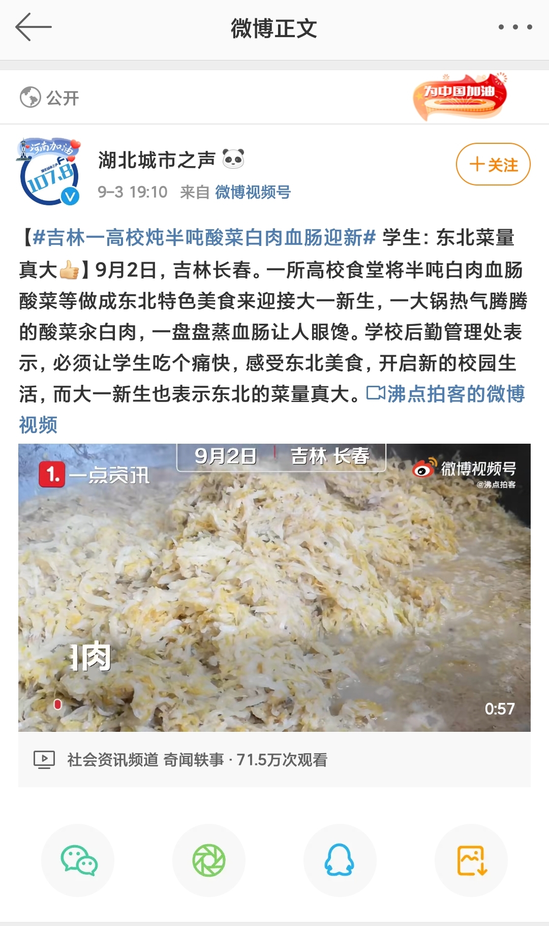【湖北城市之聲】#吉林一高校燉半噸酸菜白肉血腸迎新# 學(xué)生:東北菜量真大