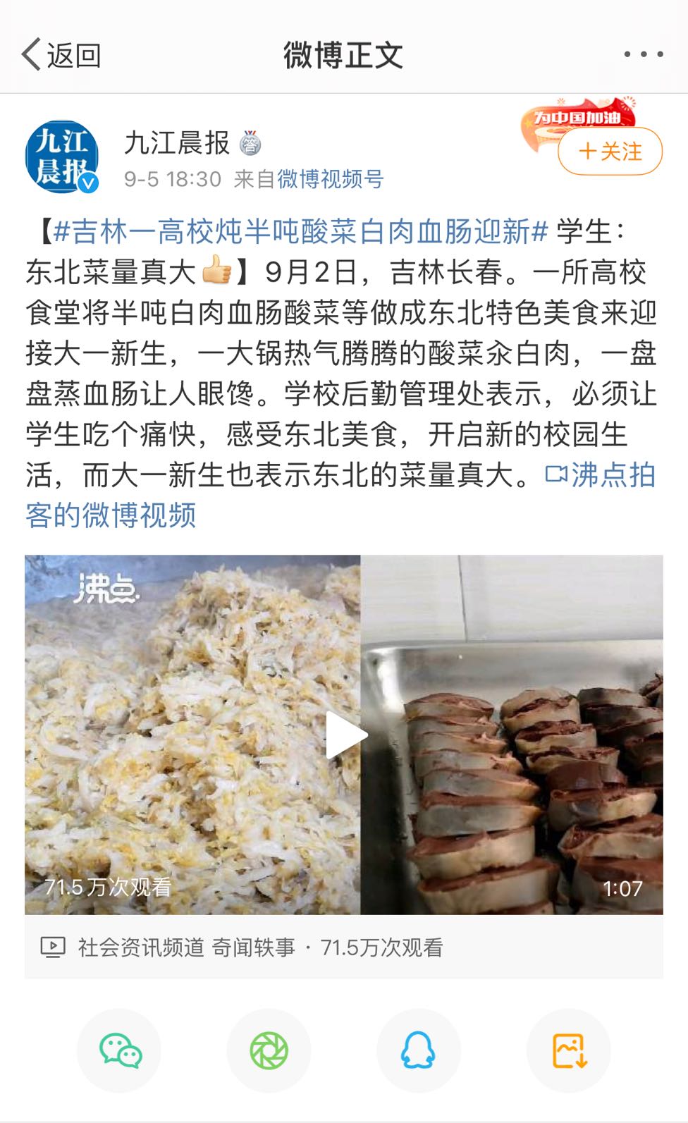 【九江晨報(bào)】#吉林一高校燉半噸酸菜白肉血腸迎新# 學(xué)生:東北菜量真大