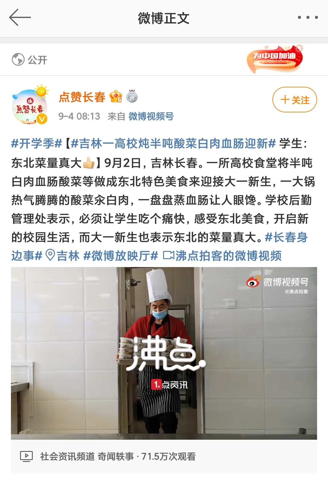 【點(diǎn)贊長春】#吉林一高校燉半噸酸菜白肉血腸迎新# 學(xué)生:東北菜量真大