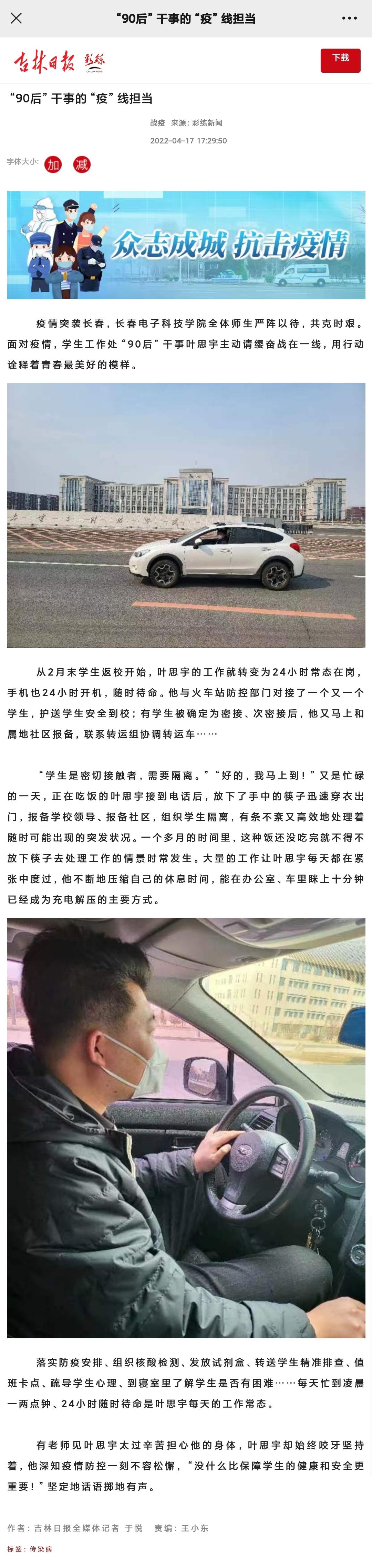 【吉林日?qǐng)?bào)】“90后”干事的“疫”線擔(dān)當(dāng)
