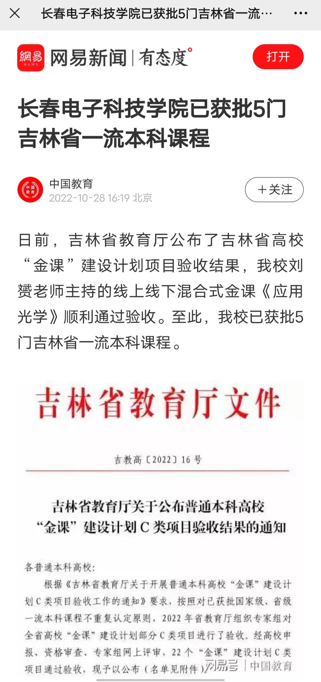 【網易新聞】長春電子科技學院已獲批5門吉林省一流本科課程