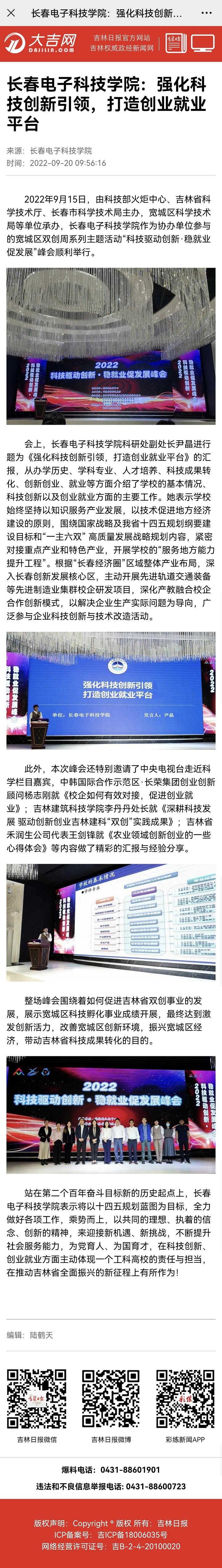 【吉林日?qǐng)?bào)】長(zhǎng)春電子科技學(xué)院:強(qiáng)化科技創(chuàng)新引領(lǐng),打造創(chuàng)業(yè)就業(yè)平臺(tái)