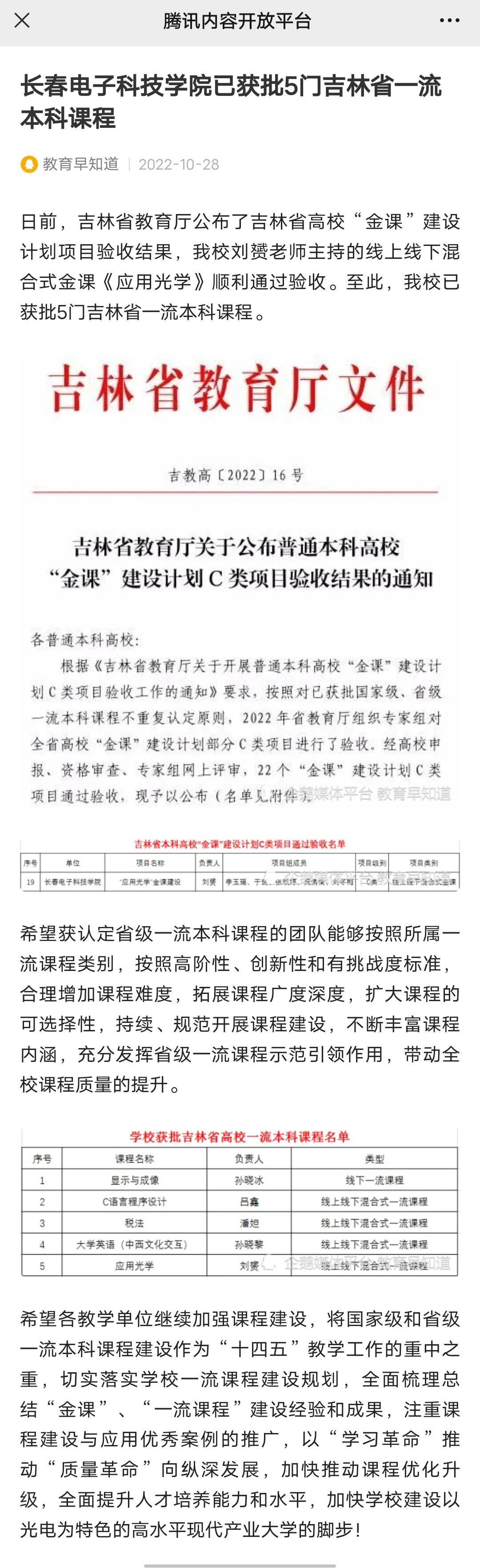 【騰訊新聞】長(zhǎng)春電子科技學(xué)院已獲批5門(mén)吉林省一流本科課程