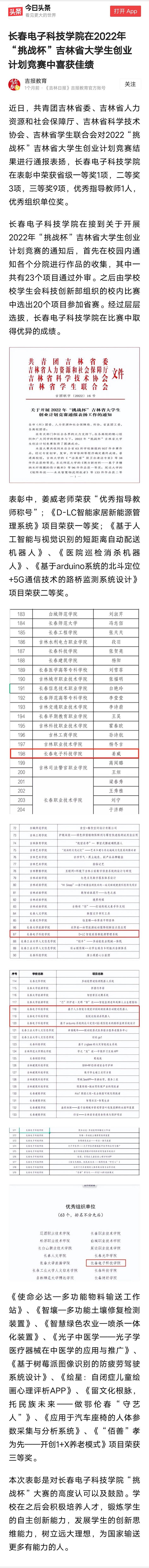 【今日頭條】長春電子科技學(xué)院在2022年“挑戰(zhàn)杯”吉林省大學(xué)生創(chuàng)業(yè)計(jì)劃競賽中喜獲佳績
