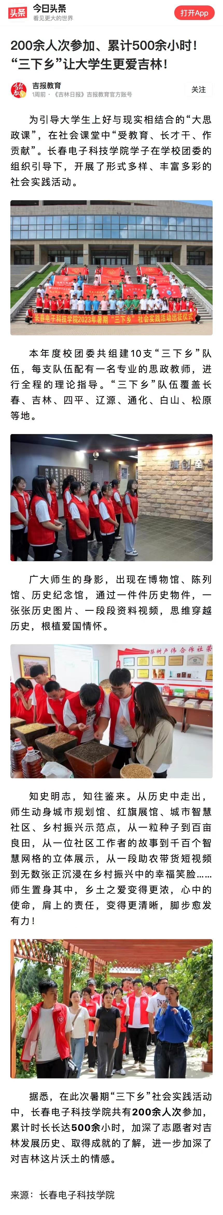【今日頭條】200余人次參加、累計(jì)500余小時(shí)!“三下鄉(xiāng)”讓大學(xué)生更愛吉林!