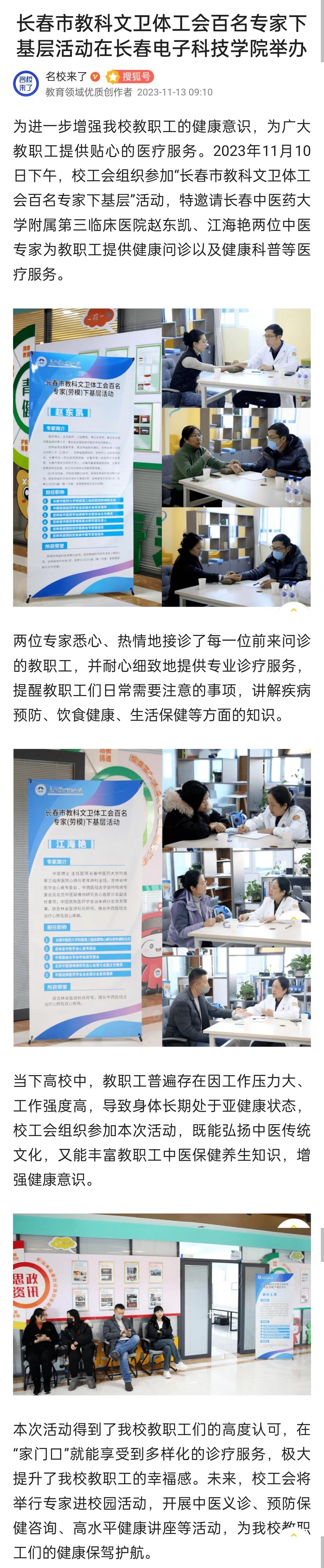 【搜狐】長春市教科文衛(wèi)體工會百名專家下基層活動在長春電子科技學院舉辦