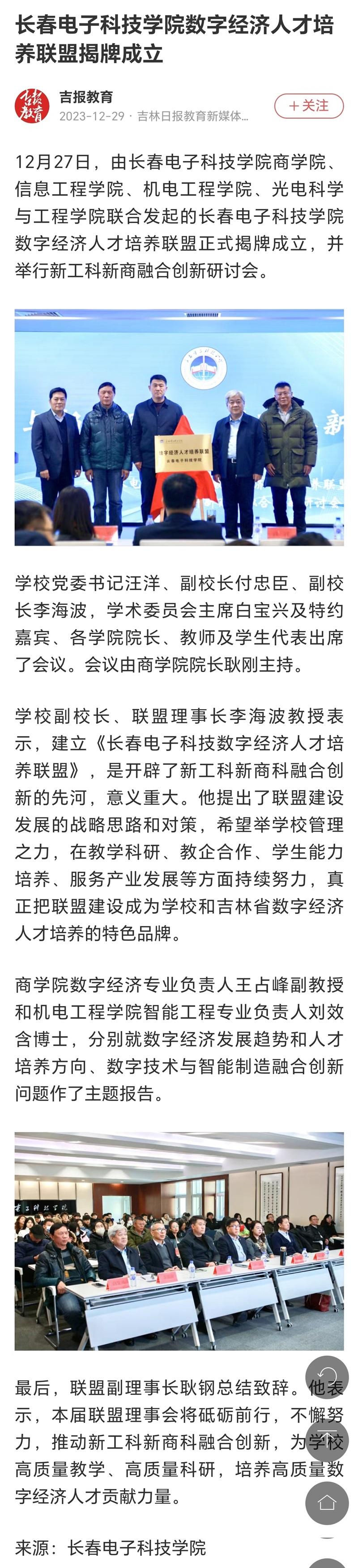 【今日頭條】長春電子科技學(xué)院數(shù)字經(jīng)濟人才培養(yǎng)聯(lián)盟揭牌成立