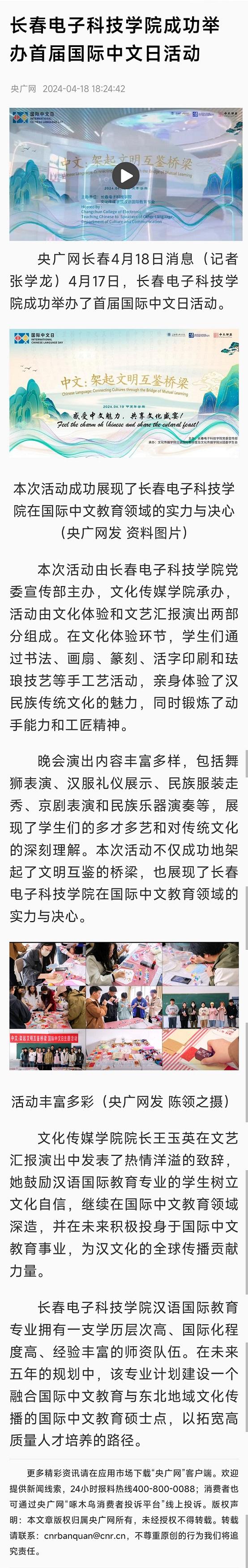 【央廣網(wǎng)】長春電子科技學(xué)院成功舉辦首屆國際中文日活動