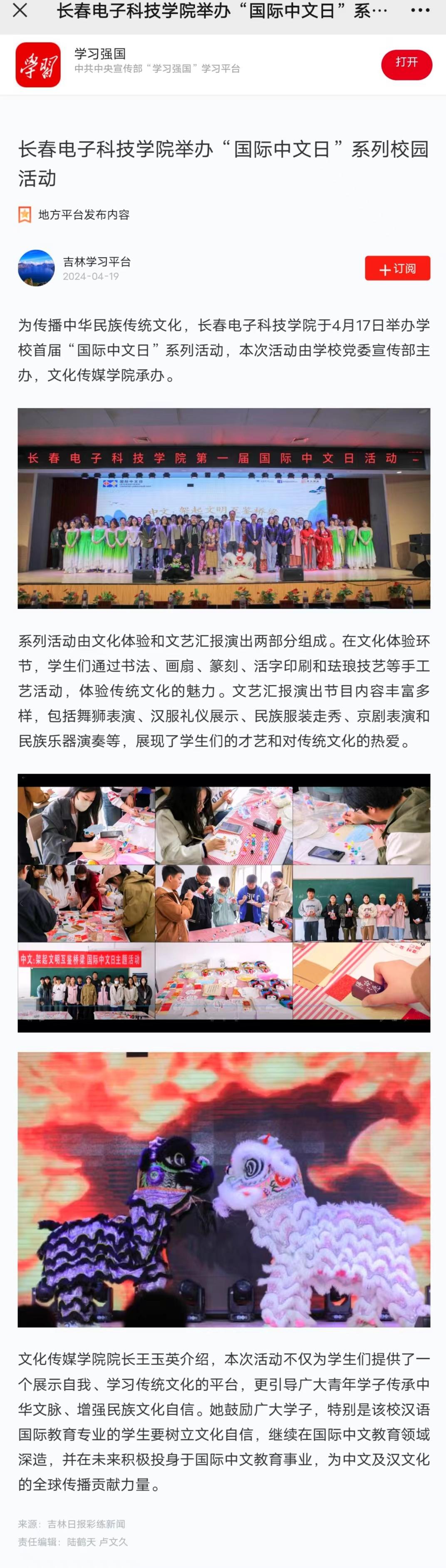 【學(xué)習(xí)強(qiáng)國】長春電子科技學(xué)院舉辦“國際中文日”系列校園活動