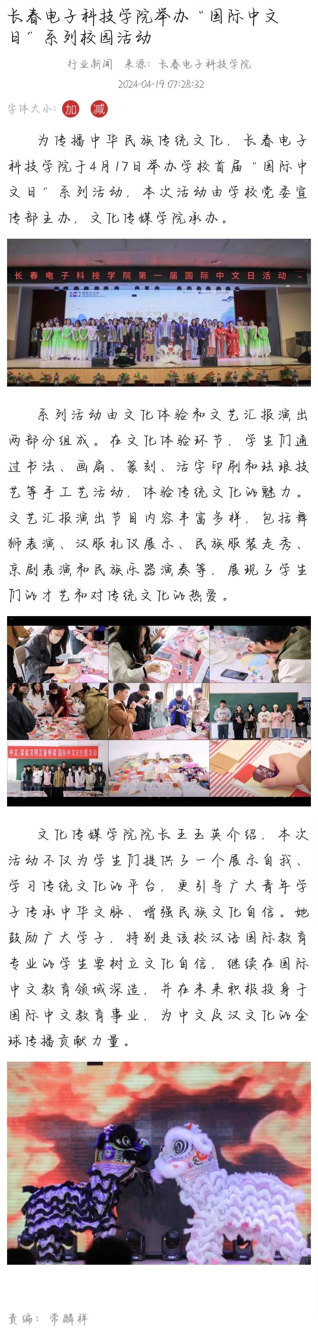 【吉林日報】長春電子科技學院舉辦“國際中文日”系列校園活動