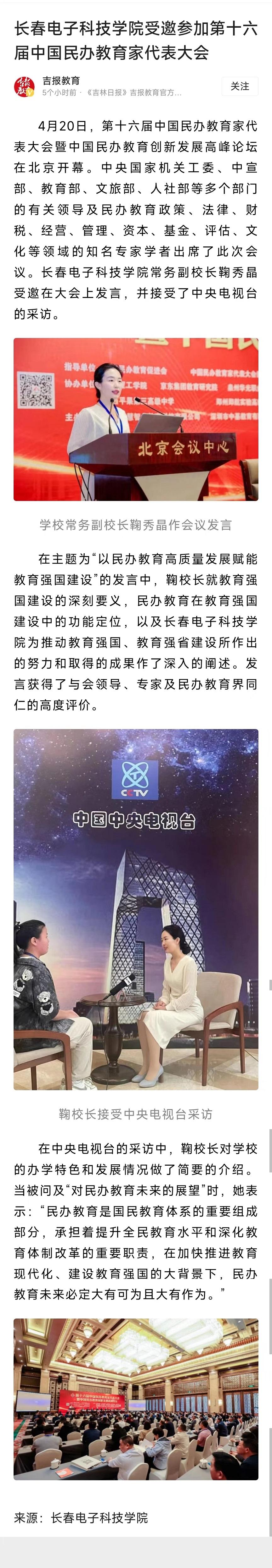 【今日頭條】長春電子科技學(xué)院受邀參加第十六屆中國民辦教育家代表大會(huì)