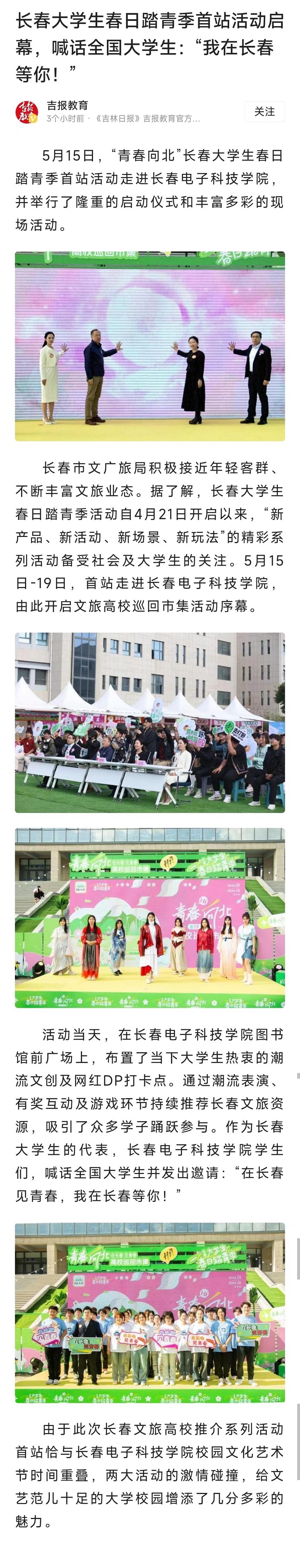 【今日頭條】長春大學(xué)生春日踏青季首站活動(dòng)啟幕,喊話全國大學(xué)生:“我在長春等你!”