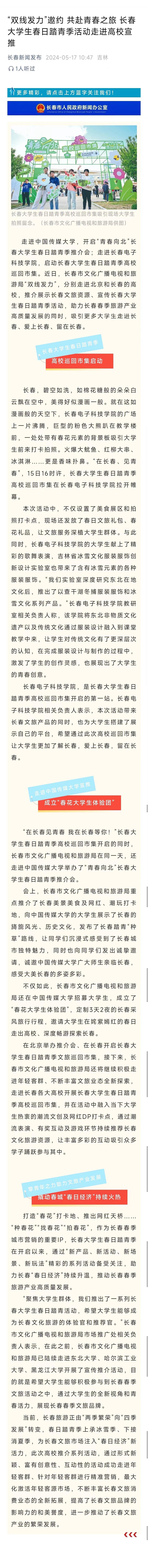 【長春新聞】“雙線發(fā)力”邀約 共赴青春之旅 長春大學生春日踏青季活動走進高校宣推