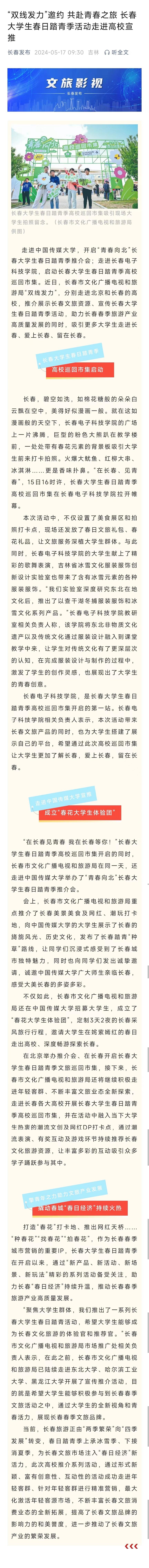 【長春發(fā)布】“雙線發(fā)力”邀約 共赴青春之旅 長春大學生春日踏青季活動走進高校宣推