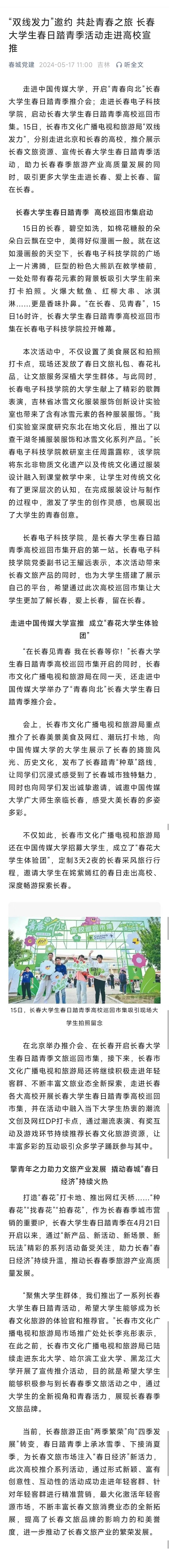 【春城黨建】“雙線發(fā)力”邀約 共赴青春之旅 長春大學生春日踏青季活動走進高校宣推