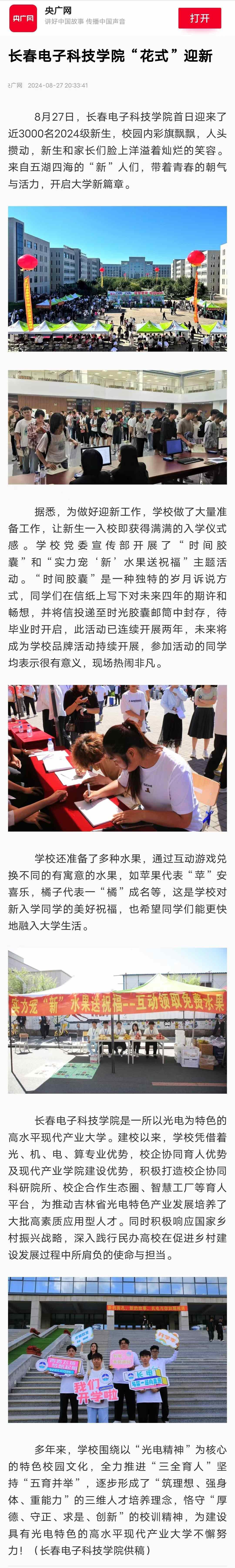 【央廣網(wǎng)】長春電子科技學院“花式”迎新