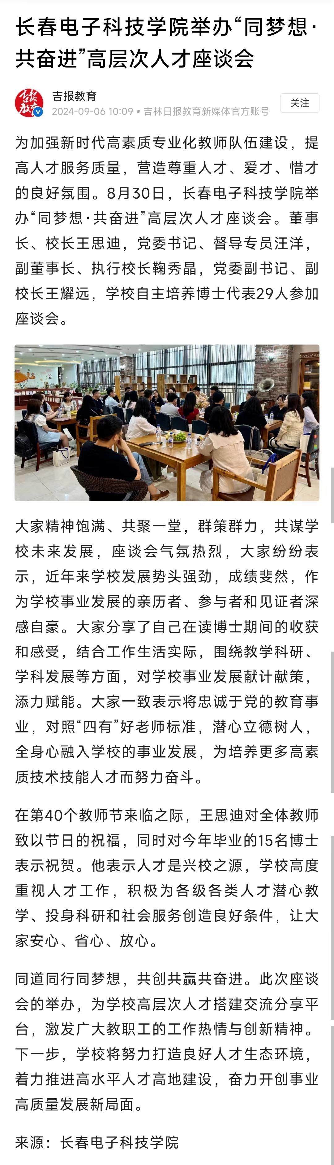 【人民號】長春電子科技學(xué)院舉辦“同夢想·共奮進(jìn)”高層次人才座談會