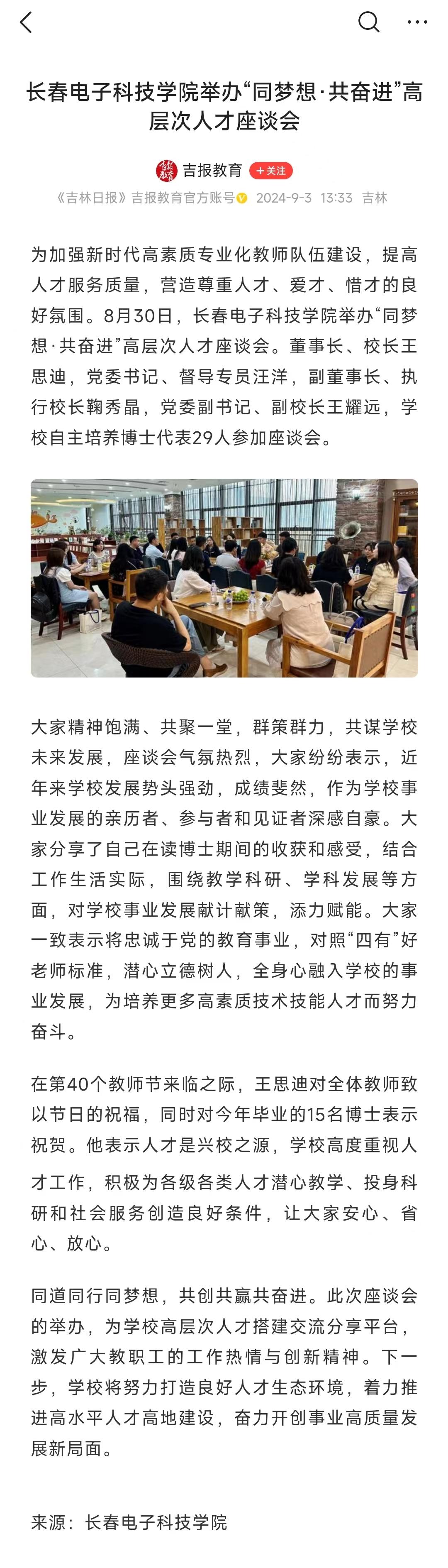【今日頭條】長(zhǎng)春電子科技學(xué)院舉辦“同夢(mèng)想·共奮進(jìn)”高層次人才座談會(huì)
