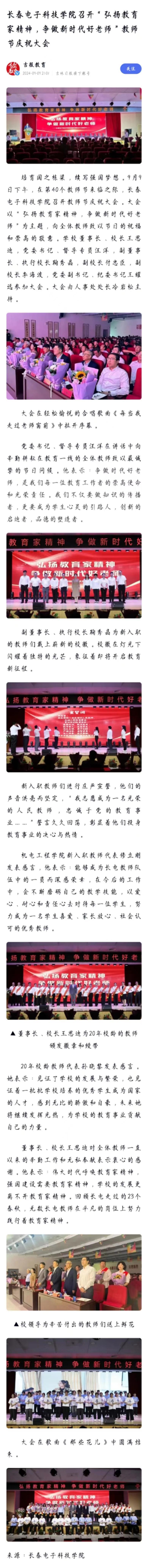 【百度】長春電子科技學(xué)院召開“弘揚(yáng)教育家精神,爭做新時(shí)代好老師”教師節(jié)慶祝大會(huì)