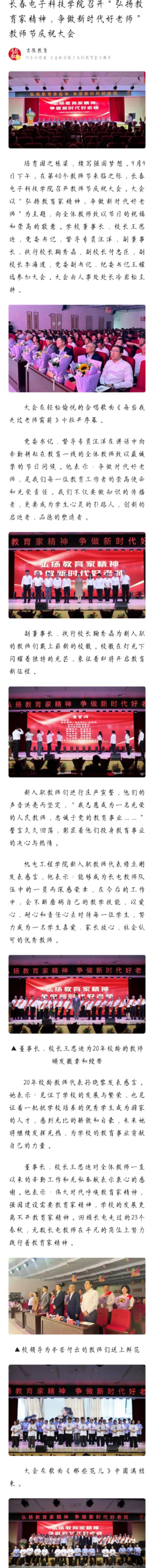 【今日頭條】長春電子科技學(xué)院召開“弘揚(yáng)教育家精神,爭做新時(shí)代好老師”教師節(jié)慶祝大會(huì)