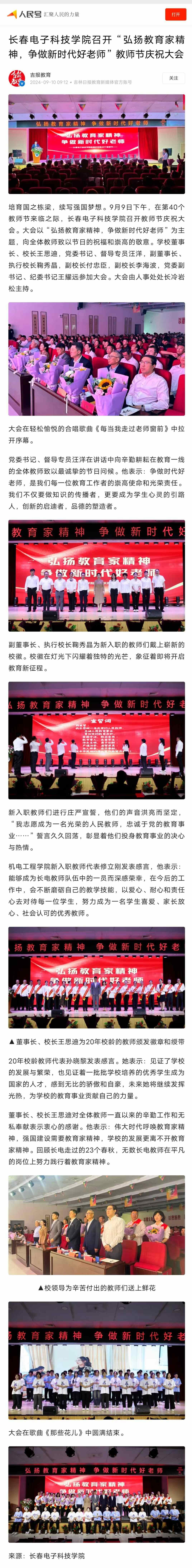 【人民號】長春電子科技學院召開“弘揚教育家精神,爭做新時代好老師”教師節(jié)慶祝大會