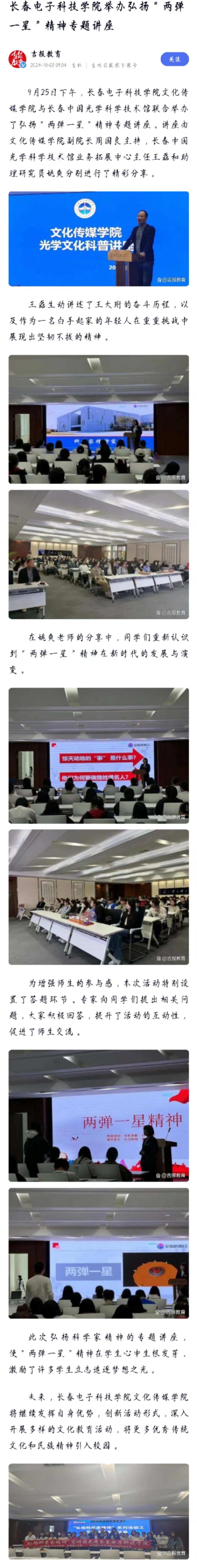 【百度】長春電子科技學(xué)院舉辦弘揚(yáng)“兩彈一星”精神專題講座