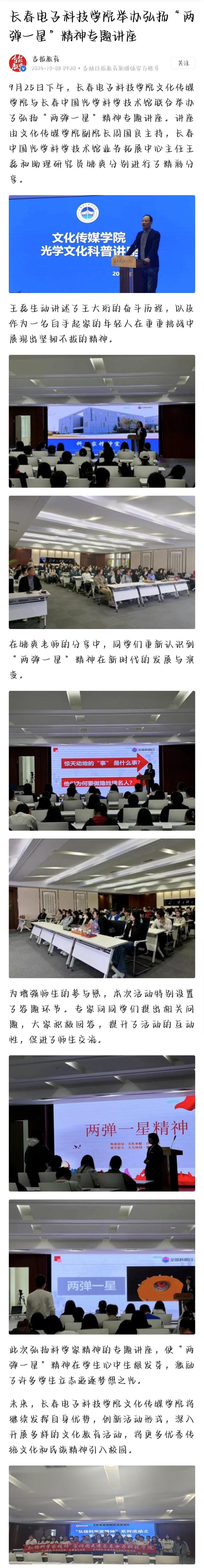 【人民號】長春電子科技學院舉辦弘揚“兩彈一星”精神專題講座