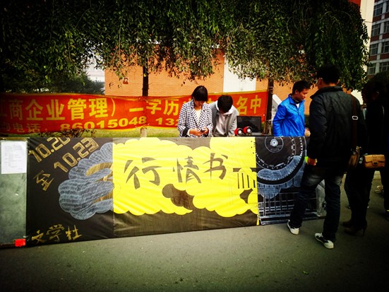 文學社于小白樓下正式展開征文活動,我社社員積極作現(xiàn)場宣傳,對前來咨詢報名的同學進行了詳細的活動介紹,方便大家對“三行情書”活動目的和對參賽規(guī)則的了解。