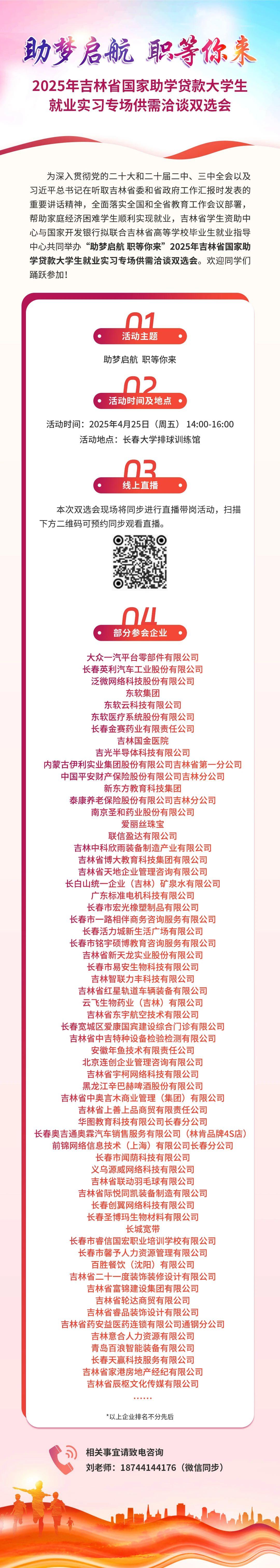 “助夢(mèng)啟航 職等你來”2025年吉林省國家助學(xué)貸款大學(xué)生就業(yè)實(shí)習(xí)專場(chǎng)供需洽談雙選會(huì)