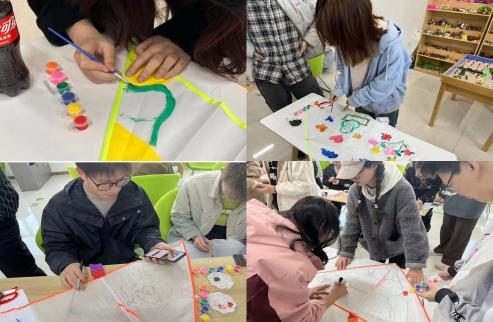 在青春健康俱樂部里,同學(xué)們發(fā)揮想象力和動手能力,用畫筆蘸取五顏六色的顏料,盡情為風(fēng)箏增添上絢麗的色彩,一筆一畫中讓“春天”躍然紙上。活動現(xiàn)場一片歡聲笑語,洋溢著快樂的氛圍。