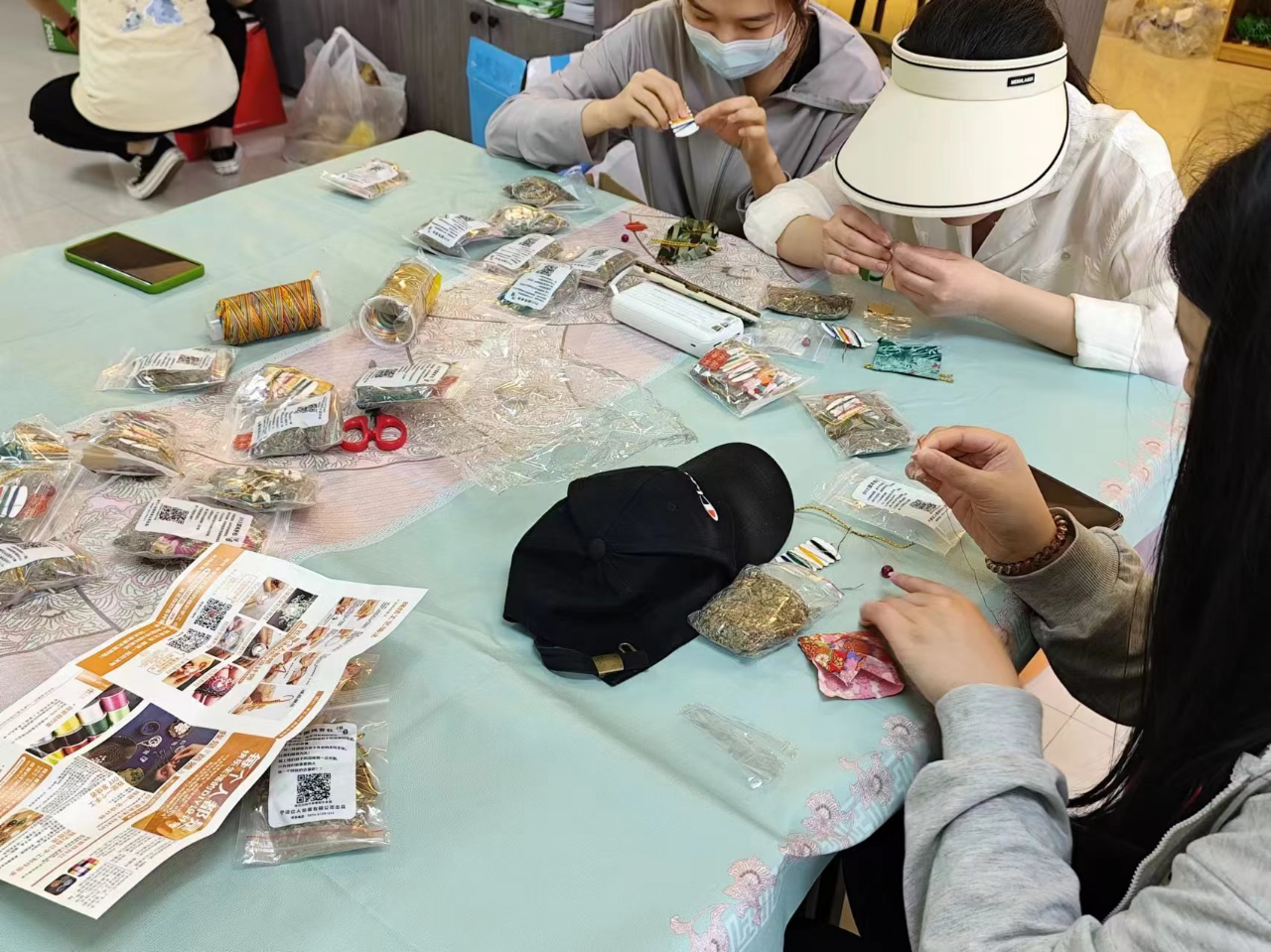 6月5日下午,青春健康同伴社的志愿者們?cè)缭绲夭贾煤昧藞?chǎng)地,五彩的布料、香料、精致的線繩一應(yīng)俱全,等待同學(xué)們的到來(lái)。隨著參與者的陸續(xù)到來(lái),現(xiàn)場(chǎng)的氣氛逐漸熱烈起來(lái)。
