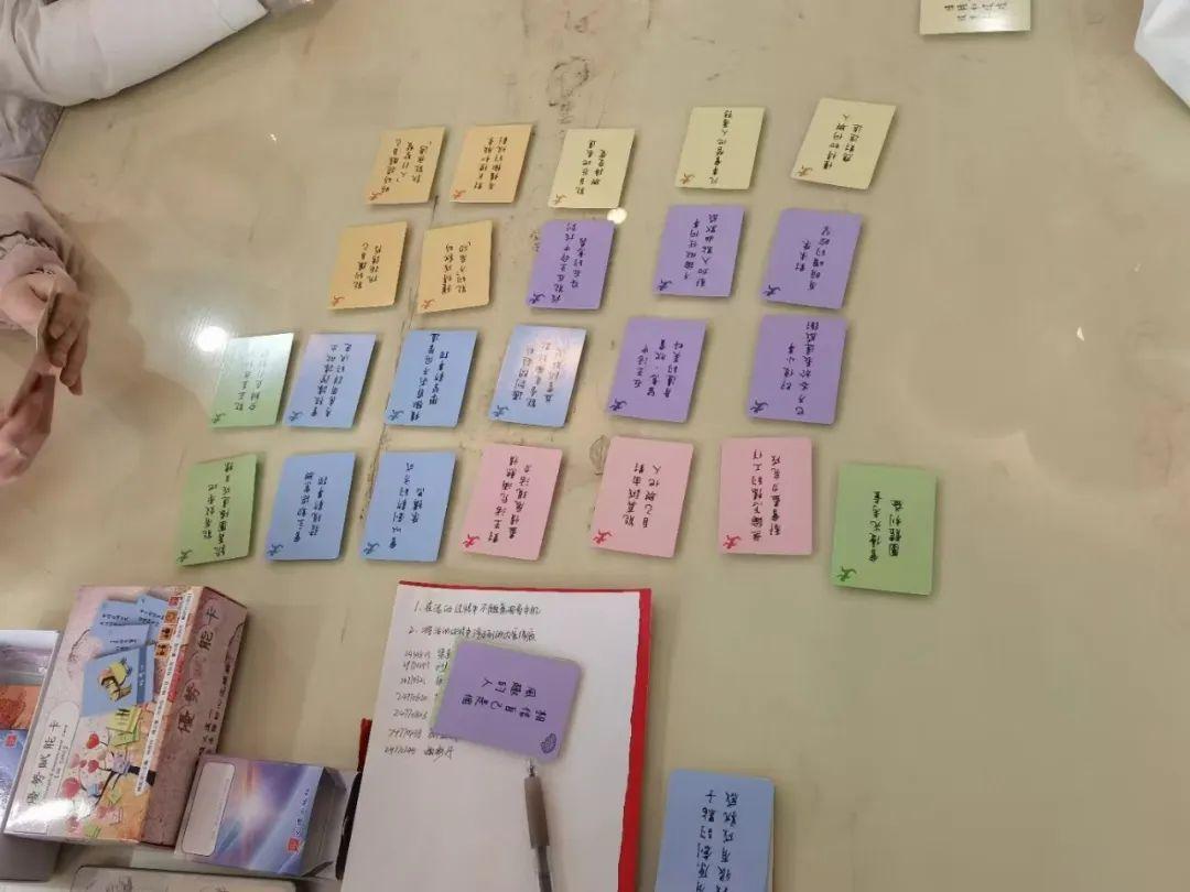 最后是“情緒優(yōu)勢卡”環(huán)節(jié),參與者將前兩輪所選卡牌與對應(yīng)的情緒進(jìn)行對比,審視當(dāng)下自身情緒,探索認(rèn)知、行為與情緒的匹配度,進(jìn)而洞察內(nèi)心。