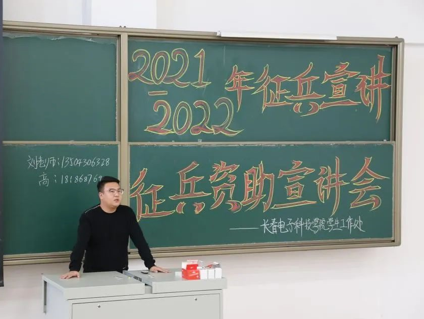 莘莘學子攜筆從戎,參軍報國建功立業(yè)。為積極響應國家大學生征兵號召,鞏固國防建設,不斷為軍隊注入新鮮血液。2021年11月23日下午,為鼓勵大學生踴躍報名參軍,進一步做好2022年春季招兵宣傳工作,長春電子科技學院 2022屆大學生冬春季征兵活動宣傳儀式在東階402舉行?;顒佑蓪W生處高麒棉老師主持。