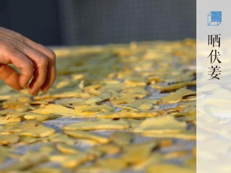 曬伏姜,伏姜源自中國山西、河南等地,三伏天時人們會把生姜切片或者榨汁后與紅糖攪拌在一起,裝入容器中蒙上紗布,于太陽下晾曬。充分融合后食用,對老寒胃,傷風咳嗽等有奇效,并有溫暖保健的功效。