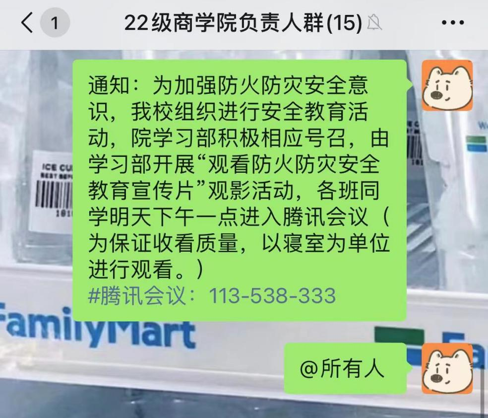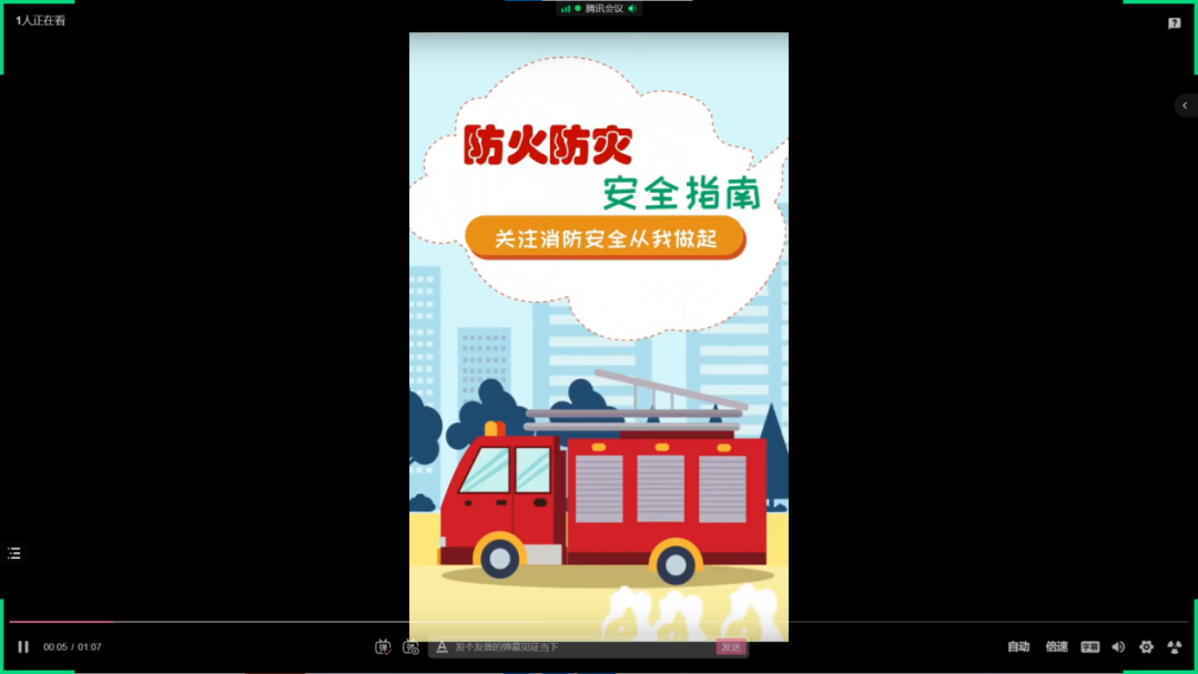 各班同學(xué)積極響應(yīng),在短時間內(nèi)全部參加此次活動。統(tǒng)一時間在騰訊會議觀看防火防災(zāi)宣傳片