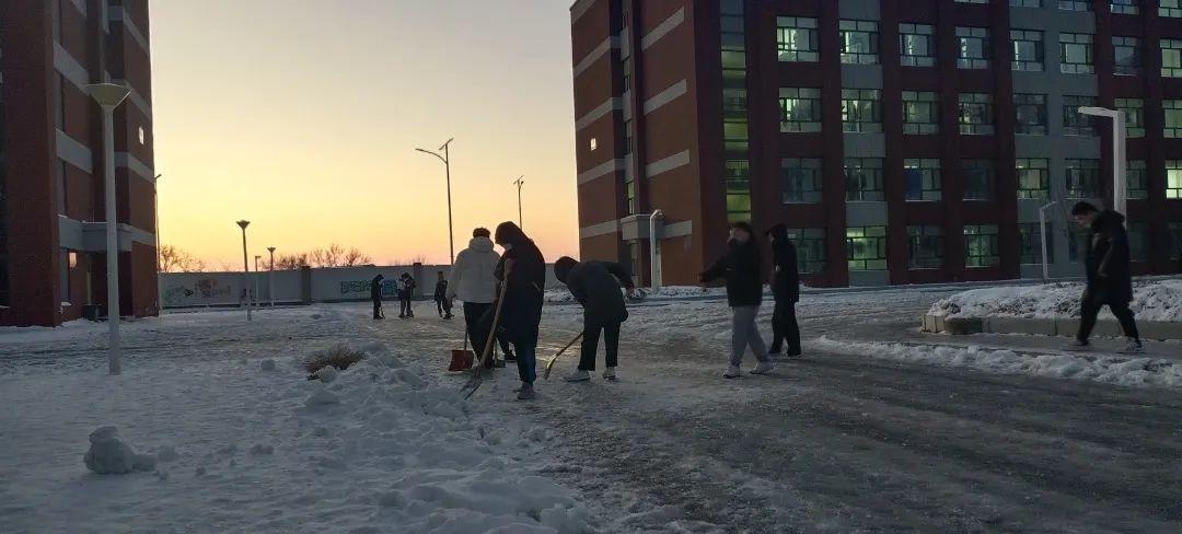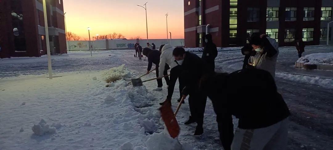 由于積雪凝結(jié)成冰,給掃雪活動增添了許多困難,但是同學們分工明確、團結(jié)協(xié)作,發(fā)揚雷鋒精神,不怕苦、不怕累、經(jīng)過一個多小時的奮戰(zhàn),同學們已將道路積雪全部清掃干凈,充分展現(xiàn)了新一代大學生蓬勃向上的精神。