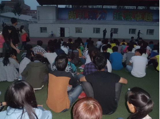 在辛苦又有收獲的軍訓(xùn)后,在經(jīng)管分院的精心籌備下,迎新晚會(huì)如期舉行。迎新晚會(huì)在特殊的場(chǎng)地進(jìn)行,團(tuán)委老師帶領(lǐng)著所有經(jīng)管分院的大一新生席地而坐,坐在操場(chǎng)上,欣賞著節(jié)目!掌聲、喝彩聲,交際成一片,似乎這樣的露天舞臺(tái),更激起了觀眾的熱情,更給演出的演員鼓了勁,整場(chǎng)晚會(huì)大概持續(xù)了1個(gè)半小時(shí),但是每個(gè)節(jié)目都得到了好評(píng),都得到了喝彩聲!