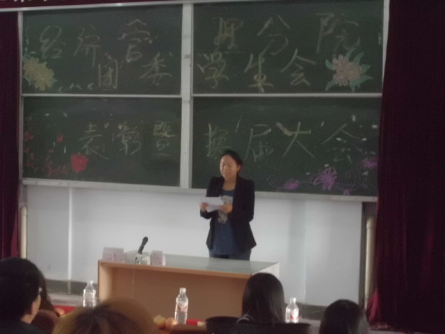 10月18日晚上6:30,經(jīng)濟(jì)管理學(xué)院學(xué)生會(huì)換屆暨表彰大會(huì)在南區(qū)主教教室隆重召開(kāi)。校團(tuán)委部分老師、上屆主席團(tuán)以及本屆學(xué)生會(huì)全體成員參加了大會(huì)。