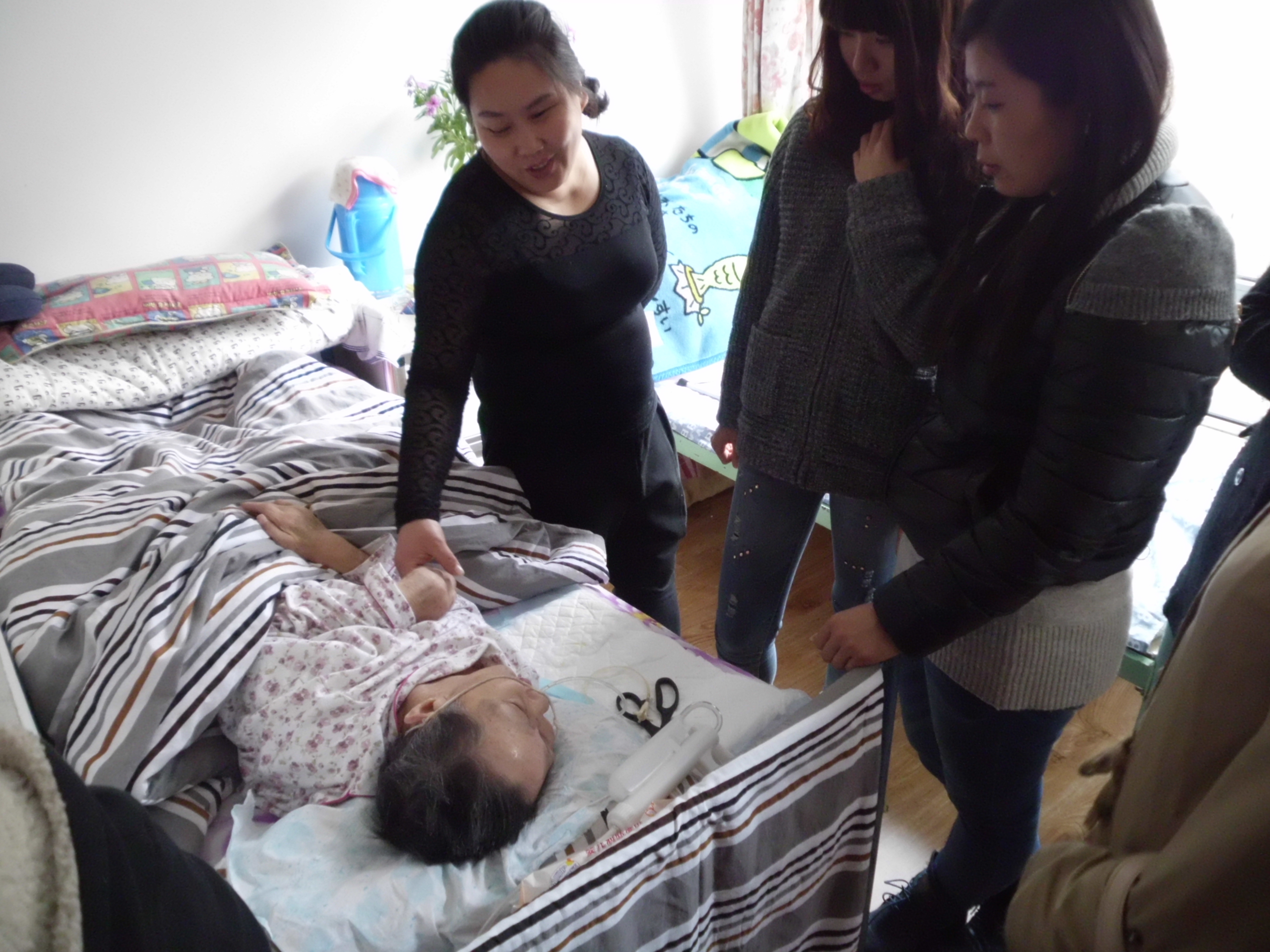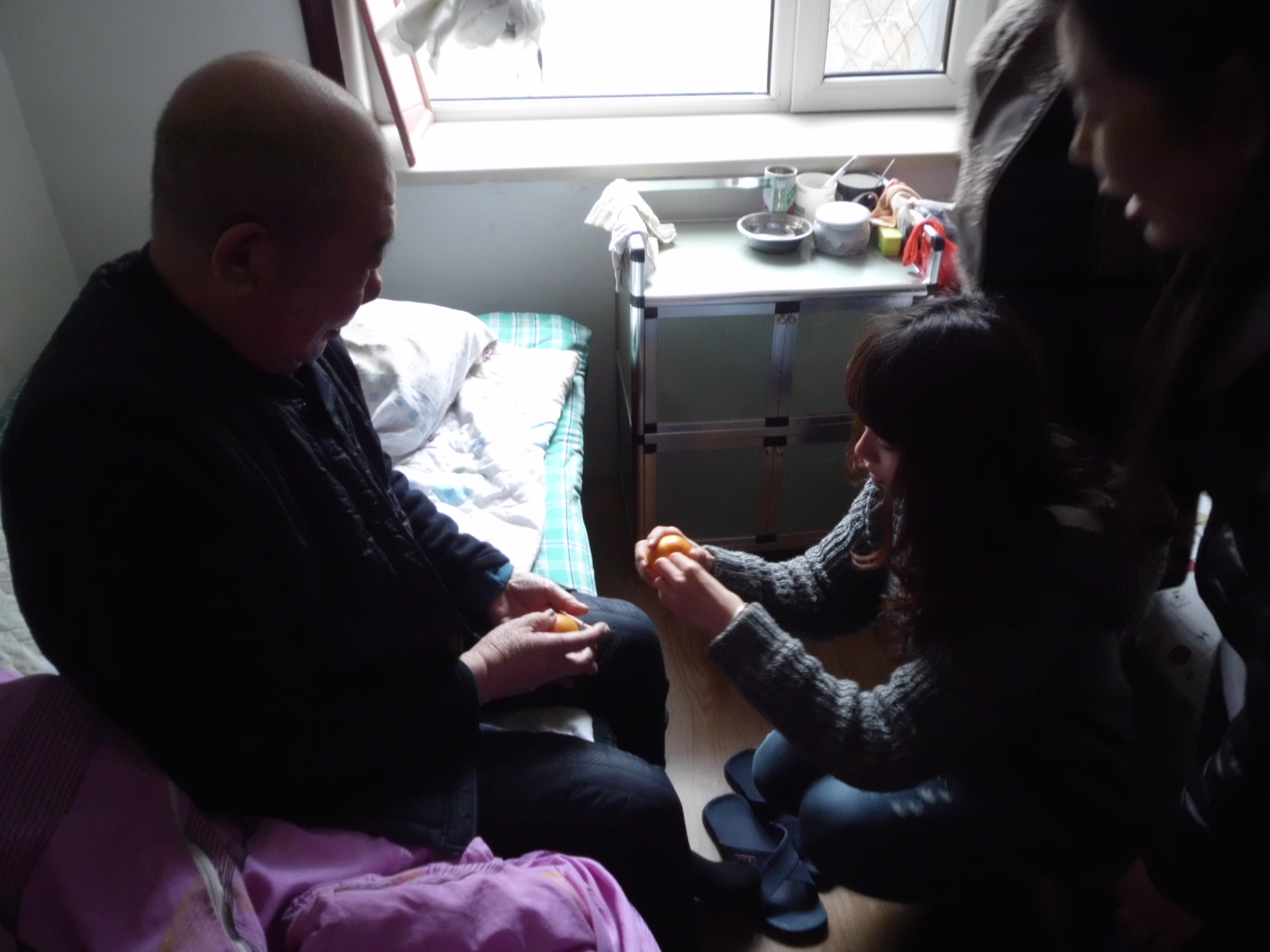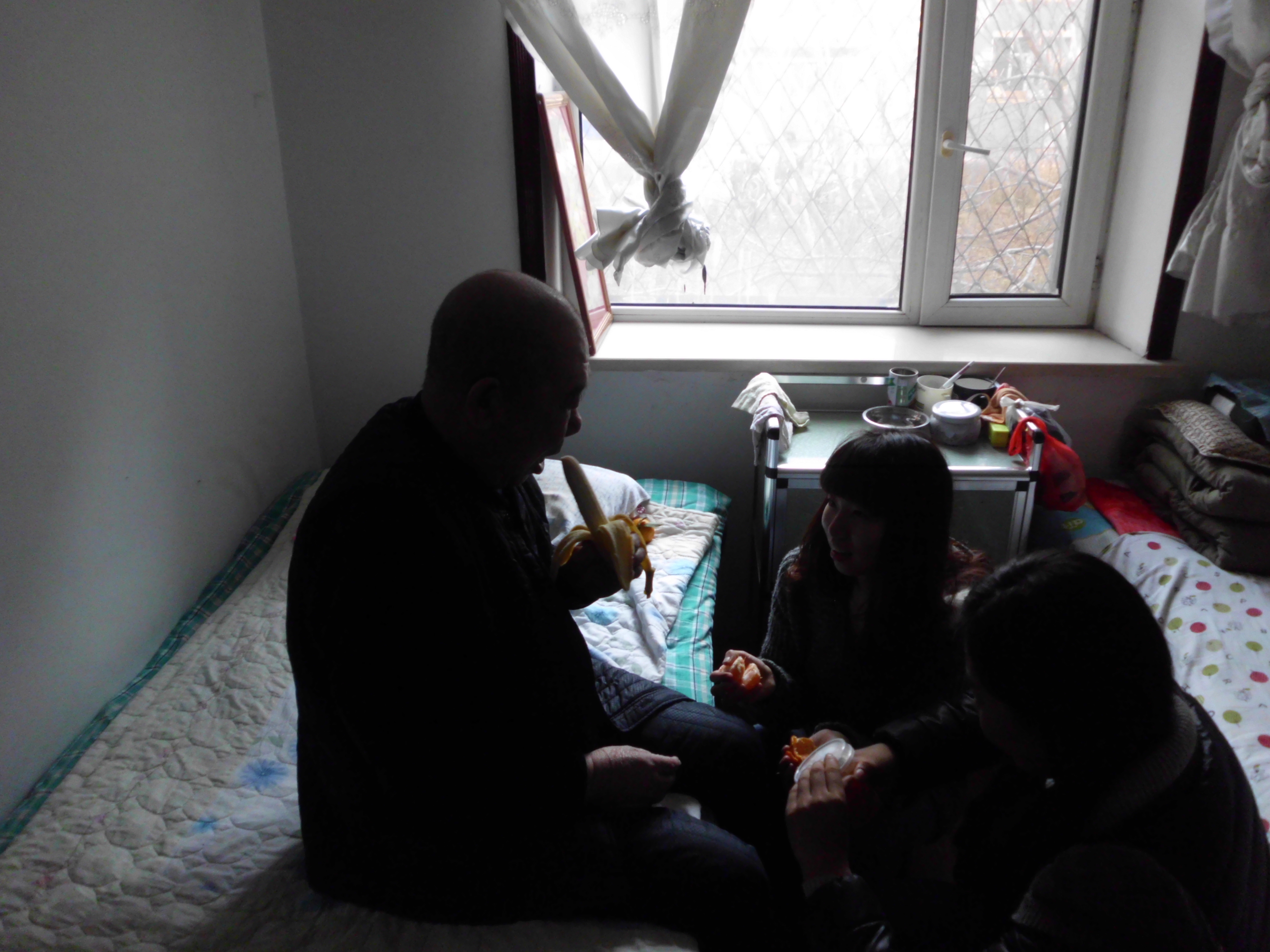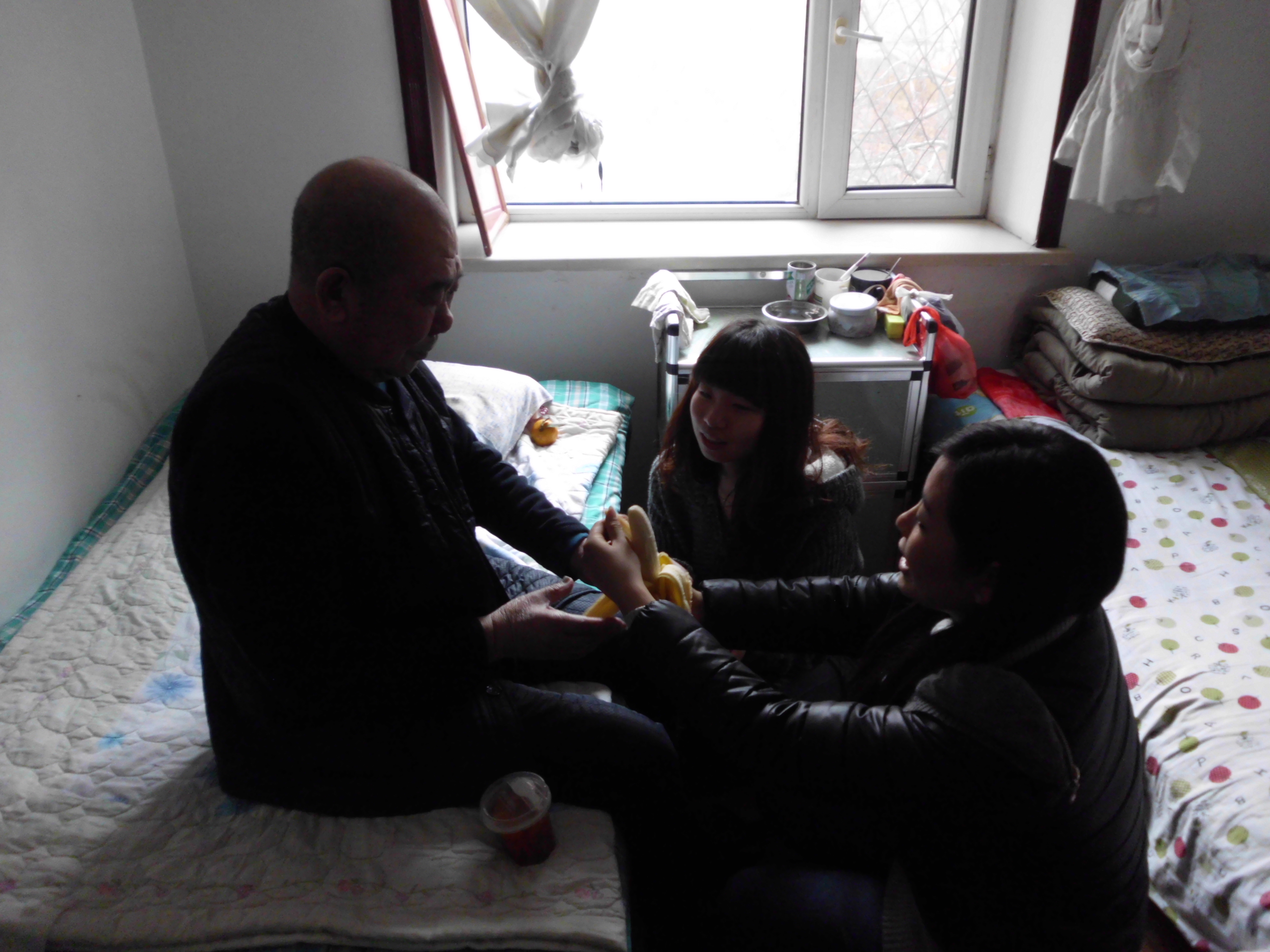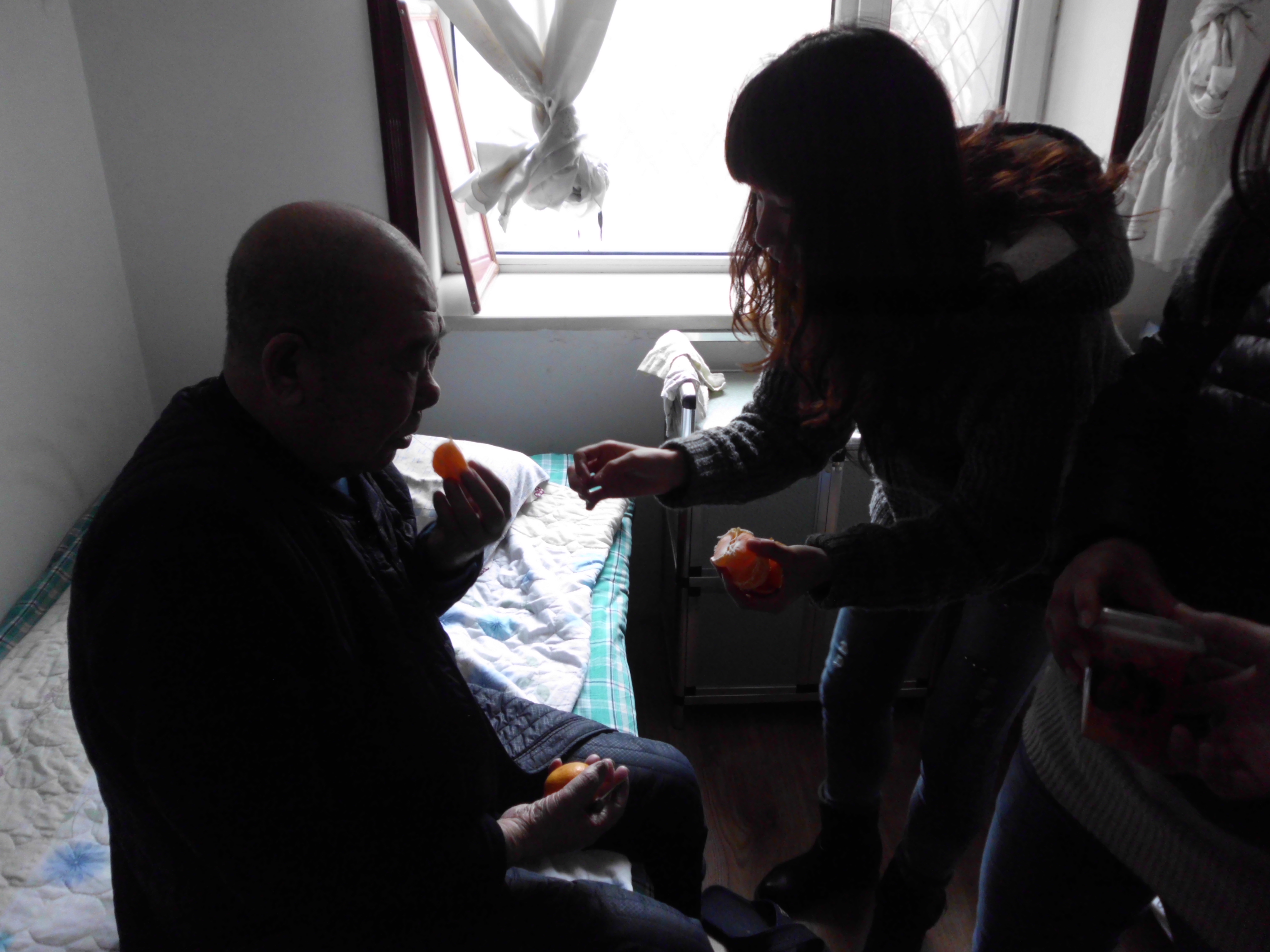 同學(xué)們擁進(jìn)老前輩們的臥室,與老人們親切交談,送上慰問(wèn)品,給老人剝水果吃。老人們個(gè)個(gè)喜笑顏開(kāi)。社會(huì)實(shí)踐部部長(zhǎng)給老人遞上剝好的香蕉,老人高興地說(shuō)“孩子,我吃了,你們也吃,我不想光顧著吃,因?yàn)榭匆?jiàn)你們太高興了。”也有老人邀請(qǐng)我們的男志愿者說(shuō)“小伙子,會(huì)不會(huì)象棋啊?來(lái)玩一盤。”我們的同學(xué)微笑應(yīng)邀,老前輩也是當(dāng)仁不讓,真是老夫聊發(fā)少年狂啊!同學(xué)們也開(kāi)心的圍在老人們身邊噓寒問(wèn)暖,聽(tīng)老前輩們講老故事,什么一汽的發(fā)展史、老城區(qū)的建設(shè)、最開(kāi)始的二路汽車、長(zhǎng)春鐵路局的故事等。同學(xué)們唏噓不已,仿佛在老人的眼中,又看到了昨日重現(xiàn),那時(shí)他們正年輕,那時(shí)他們都在自己的崗位上努力的工作著,向社會(huì)奉獻(xiàn)著自己的力量。