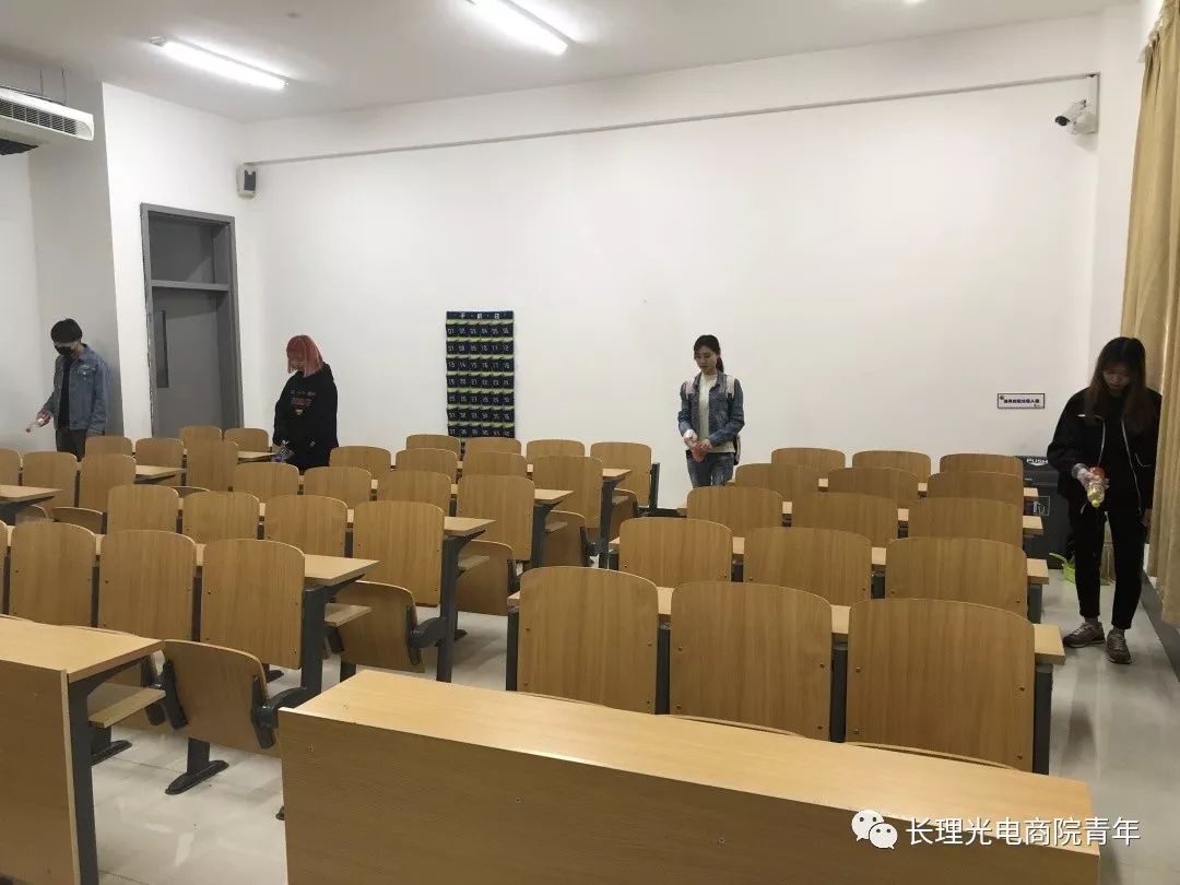 學(xué)生會成員們運用事先準備好的消毒產(chǎn)品對寢室衛(wèi)生,教室衛(wèi)生,進行全方面無死角的消毒。在消毒過程中盡管非常的辛苦,但是大家并沒有因此退卻,反而是很高興自己能夠為商學(xué)院的學(xué)生們服務(wù)。在消毒的過程中,每一位同學(xué)都謙和有禮,文明禮貌,非常積極配合消毒工作。