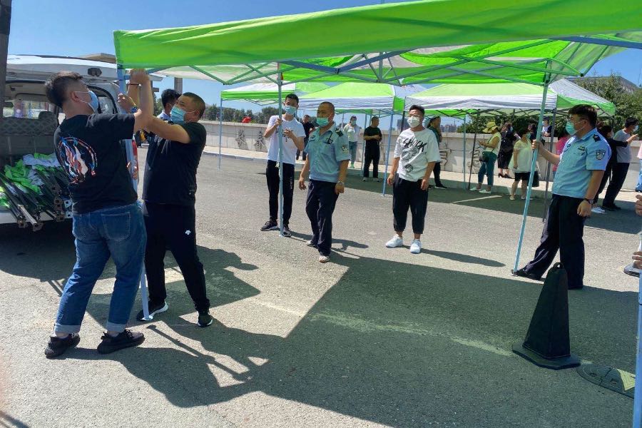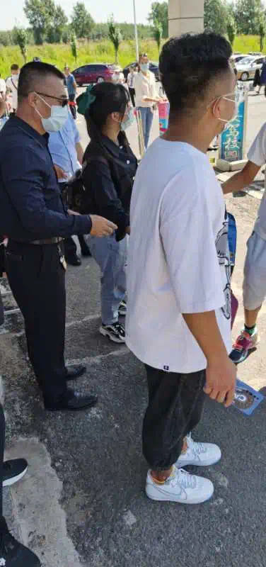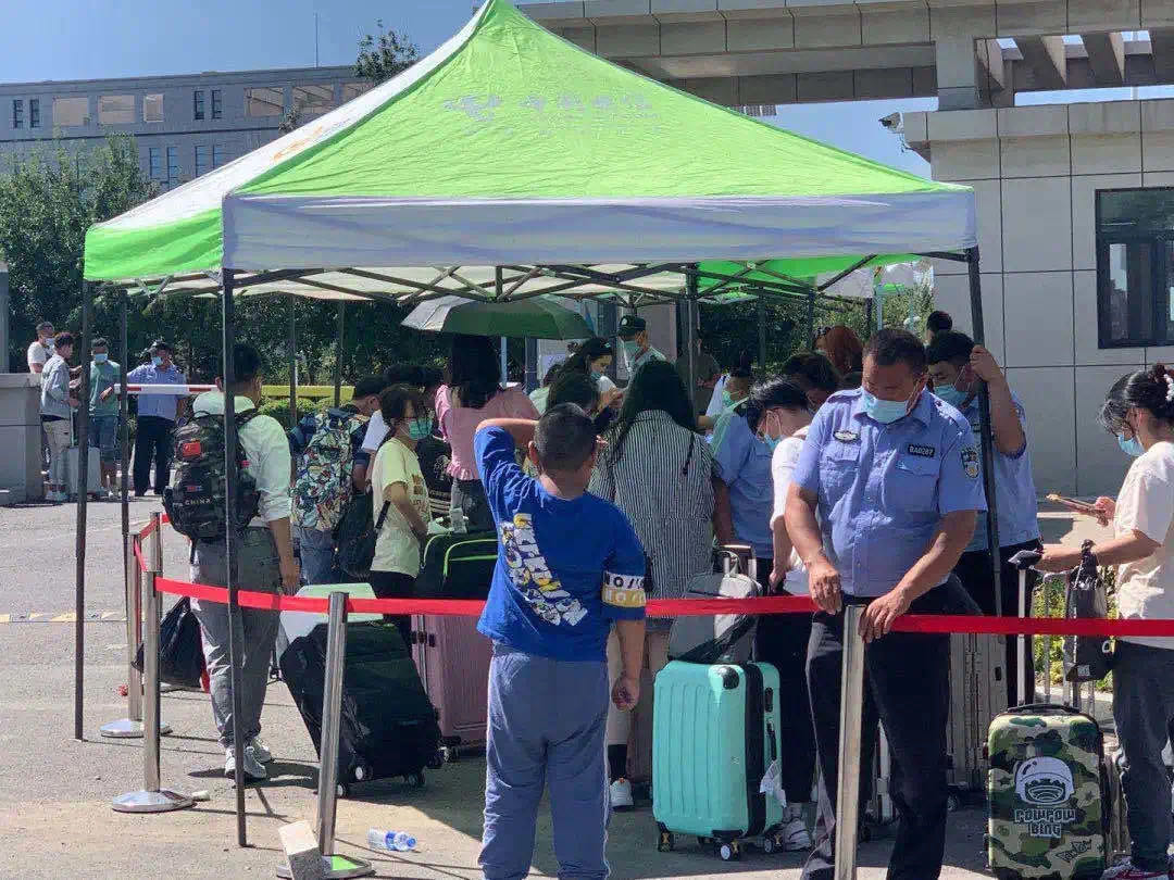 艷陽(yáng)下,同學(xué)們陸續(xù)回歸校園,有序排起長(zhǎng)隊(duì)等待各項(xiàng)檢查合格。