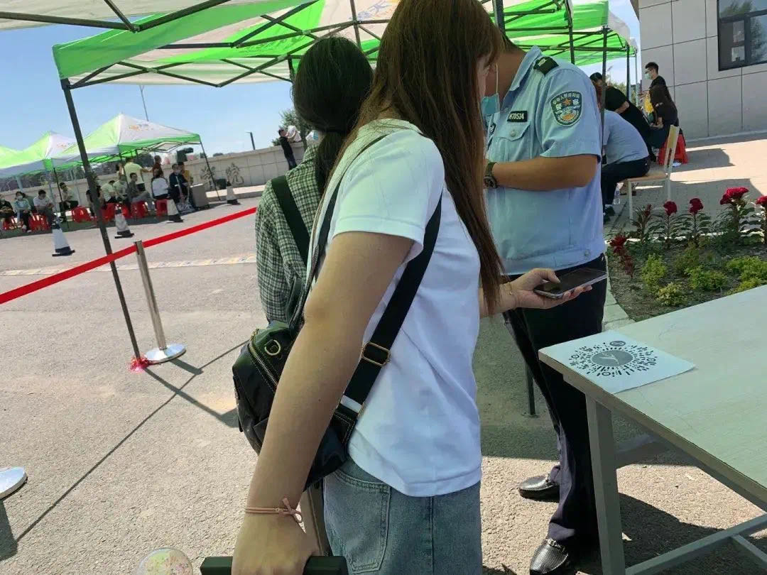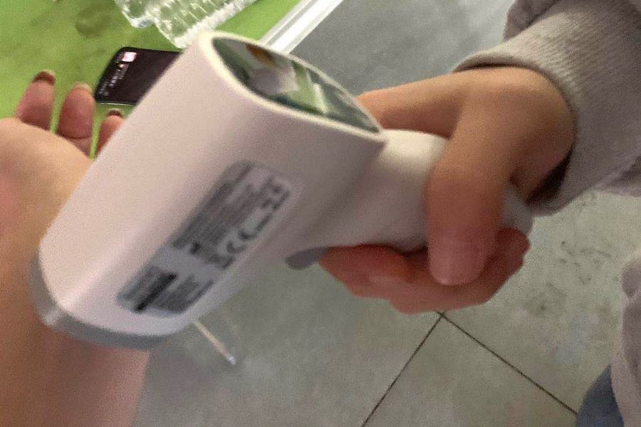 最后進(jìn)行體溫監(jiān)測(cè),體溫正常的同學(xué)有序進(jìn)入校園。