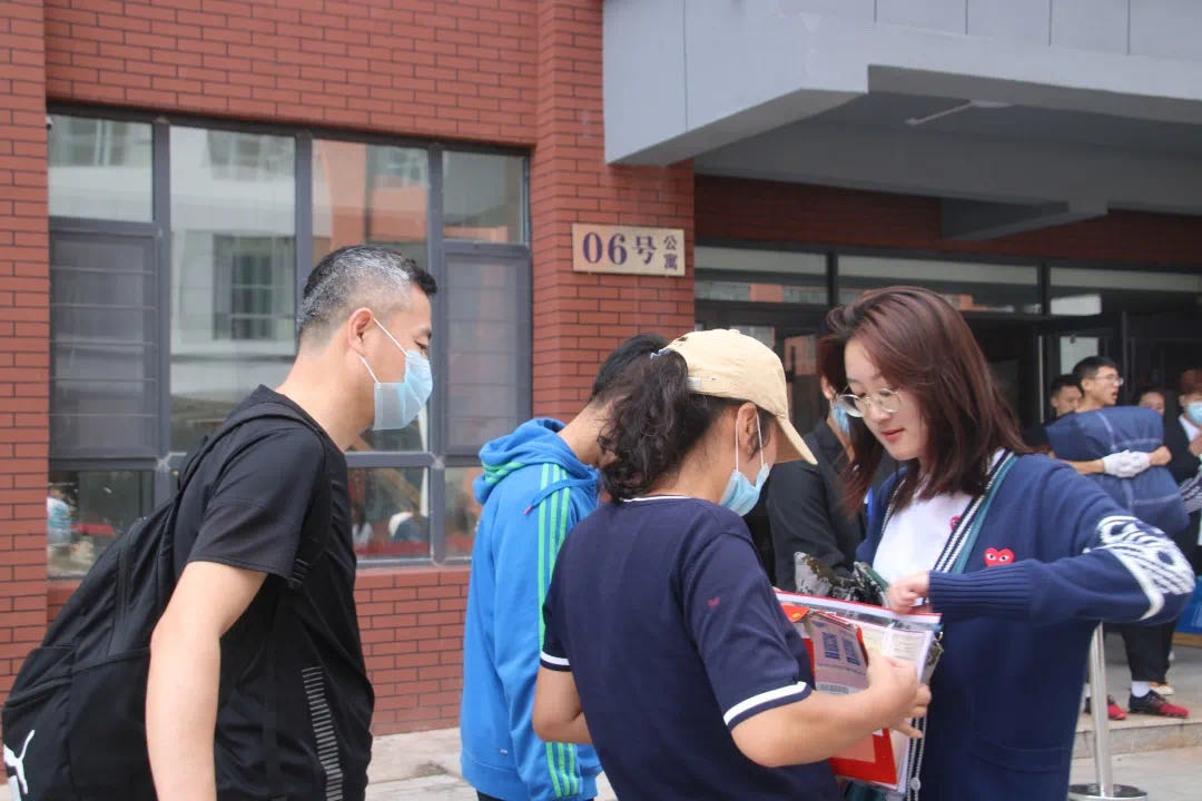 商學(xué)院的學(xué)長(zhǎng)學(xué)姐們按照新生入學(xué)流程接待每一位新生,各部門各司其職,有條不紊地接待每一位到場(chǎng)新生。學(xué)長(zhǎng)學(xué)姐們幫助他們提行李,將新生送往寢室,并熱情回答新生的所有問題。