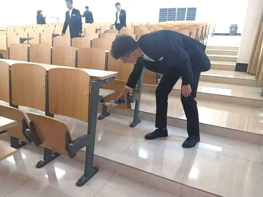 學(xué)校將按照“擦拭桌、床、清潔地面、衛(wèi)生間、噴灑消毒后關(guān)門三十分鐘以上,再開(kāi)門通風(fēng),最后再清潔的操作流程",對(duì)宿舍房間逐一驗(yàn)收,全力確保學(xué)生宿舍的清潔消毒工作做好、做實(shí),為學(xué)生健康學(xué)習(xí)營(yíng)造良好舒適的環(huán)境。