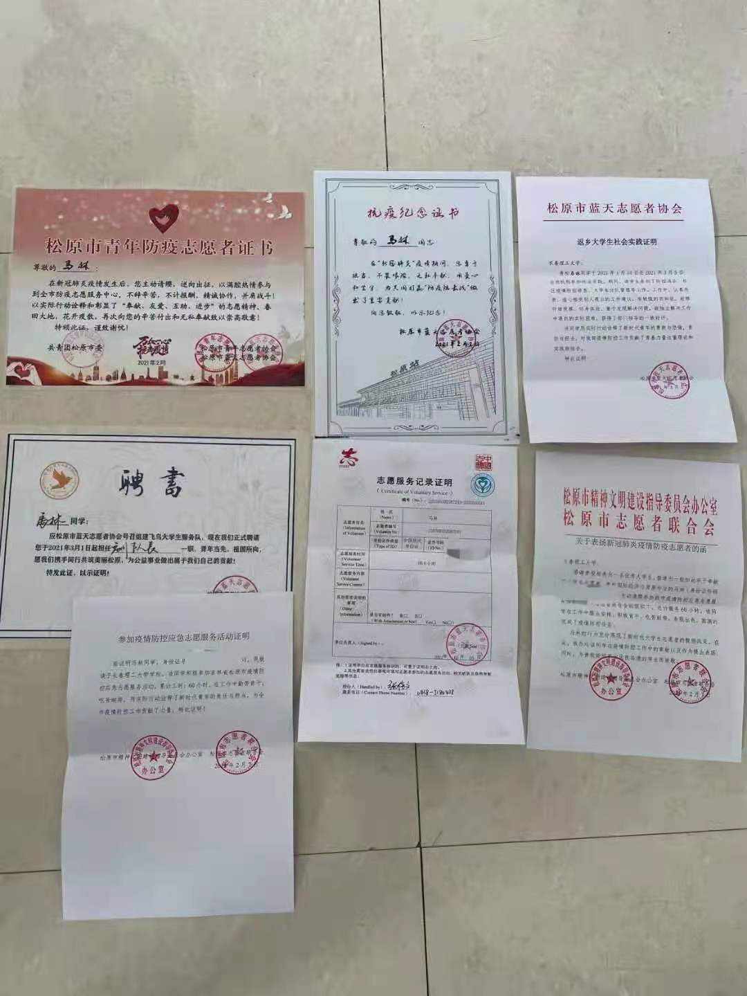 2021年1月25日,松原市疫情爆發(fā)嚴(yán)重時期,他再一次積極投入到社區(qū)疫情防控志愿服務(wù)之中,冒著被感染的危險,巡邏、登記即是他的任務(wù)。