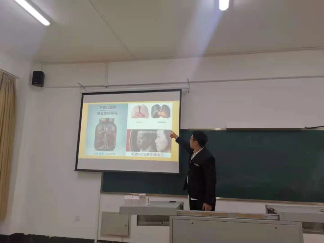 為了讓學(xué)生充分了解到煙草對人體的危害以及吸煙所導(dǎo)致的嚴(yán)重后果,各個(gè)學(xué)生會(huì)成員也在晚自習(xí)時(shí)進(jìn)入各班級宣傳,并通過舉例子的方式,給同學(xué)敲響警鐘,并要求全體學(xué)生在建筑物內(nèi)禁止吸煙。