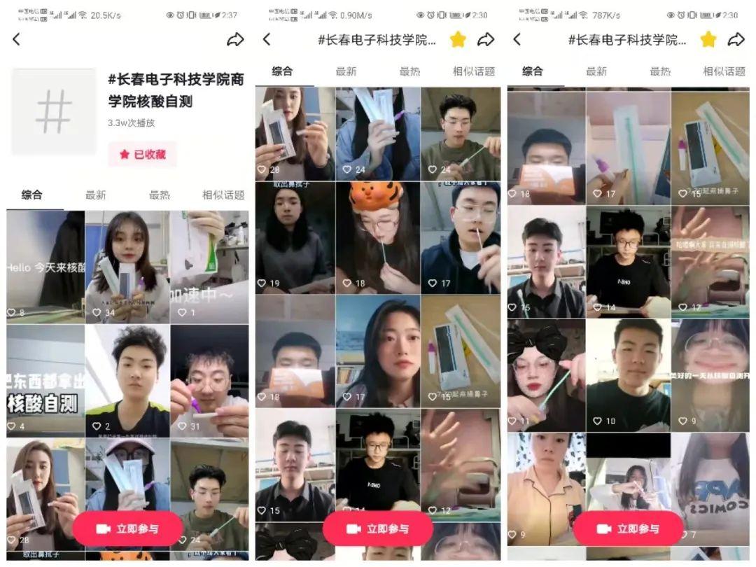 2.疫情期間,各部門組織各組成員錄制核酸自測過程小視頻,并發(fā)布在抖音APP平臺,發(fā)布過程中添加話題#長春電子科技學(xué)院商學(xué)院核酸自測,可自行添加正能量文案。